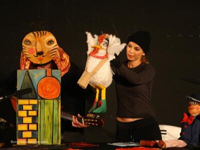 Η παράσταση υλοποιείται συνοδεία ζωντανής μουσικής και τραγουδιών ενώ η κότα και τα άλλα πρόσωπα του παραμυθιού παίζονται από κούκλες ύψους περίπου 80 εκατοστών με την τεχνική της Σχολής Βερολίνου. Η μουσική της παράστασης είναι του Γιάννη Νικολάου και η κατασκευή των σκηνικών αντικειμένων της Μπέσσυ Χαϊκάλη.