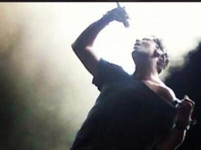 Στην εικόνα βλέπουμε τον Σάκη να φορά μια κατακόκκινη μπλούζα και ένα εφαρμοστό τζιν, ενώ από κάτω, πλήθος κόσμου έχει σηκώσει τις φωτογραφικές μηχανές για να τον απαθανατίσει, ενώ όλοι μαζί τραγουδάνε μαζί του!