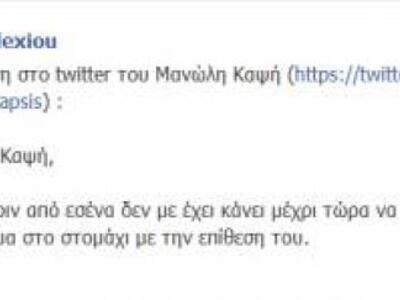 Η περίφημη λίστα με την φοροδιαφυγή των επωνύμων έχει γίνει θέμα σχολιασμού στα κοινωνικά δίκτυα ακόμα και από τους "πρωταγωνιστές" της που απαντούν στα σχόλια δημοσιογράφων και μη. Η τραγουδίστρια Χάρις Αλεξίου έγινε έξαλλη με το σχόλιο του Μανώλη Καψή στο twiiter στο οποίο γράφει: "αυτοί οι δήθεν αριστεροί, τύπου Χαρ Αλεξίου και Γαλάνη που δεν πλήρωσαν ποτέ φόρο.. είναι οι πιο σιχαμένοι".