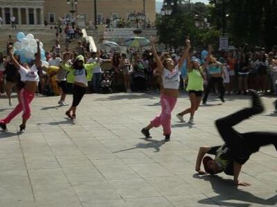 Με αφορμή την 4η συνέχεια της επιτυχημένης μουσικοχορευτικής ταινίας «Step Up», με τίτλο «Step Up 4 Revolution 3d» που ξεκίνησε ήδη από σήμερα Πέμπτη 13 Σεπτεμβρίου 2012 να προβάλλεται στις Ελληνικές αίθουσες (στην Πάτρα στα Ster cinemas στη Βέσο Μάρε) μια ευχάριστη έκπληξη περίμενε όσους περνούσαν ανυποψίαστοι από την πλατεία Συντάγματος στην Αθήνα πριν από λίγες μέρες.