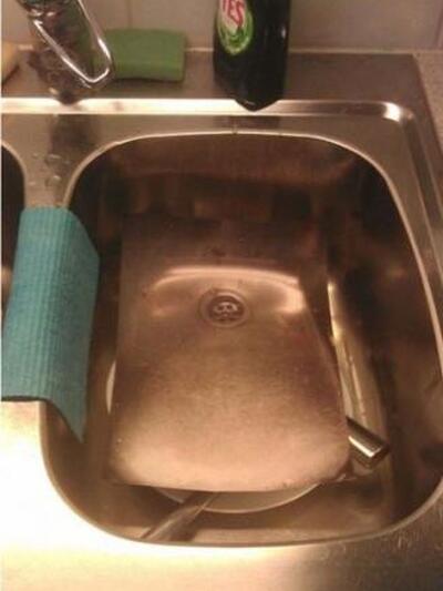 Να μια καλή ιδέα για όσους βάριουνται να πλύνουν τα πιάτα, σουπλά με εικόνα … καθαρό τον νεροχύτη σας. Θραύση θα κάνει στους φοιτητές.