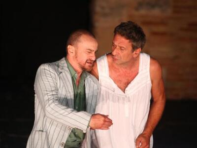 Παρόντες και φιλόξενοι οικοδεσπότες ήταν ο πρόεδρος και ιδρυτής του Φεστιβάλ Πάτρας Ανδρέας Ανδριόπουλος και ο πολιτιστικός σύμβουλος του Φεστιβάλ Ανδρέας Α. Ανδριόπουλος που φωτογραφήθηκαν τόσο με τον πρωταγωνιστή της παράστασης, τον δημοφιλή ηθοποιό Κώστα Κόκλα, εξαιρετικό ως Βλέπυρο και Α’ Γριά όσο και με τον σκηνοθέτη Βαγγέλη Θεοδωρόπουλο.