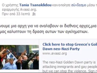 Ζητά από τους φίλους της να υπογράψουν όλοι με σκοπό να ελεγχθεί δικαστικά η δράση της Χρυσής Αυγής στην Ελλάδα