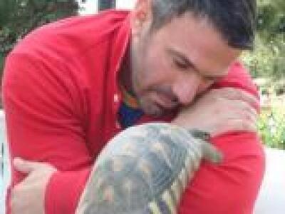 Ο δημοσιογράφος, γνωστός για την ευαισθησία του απέναντι στα ζώα φρόντισε να συστηθεί σε μια χελώνα την οποία αποκαλεί «κορίτσι» του.