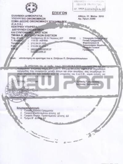 Και ο κ. Σπηλιωτόπουλος καταλήγει «μόλις πήρα την απάντηση απο το ΣΔΟΕ ότι δεν με ελέγχει, ζήτησα ο ίδιος με επιστολή μου να μου γίνει έλεγχος από το ΣΔΟΕ και έτσι άρχισε ο έλεγχος».