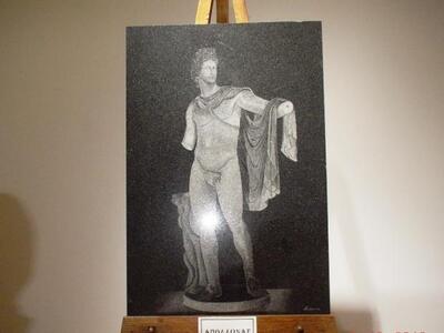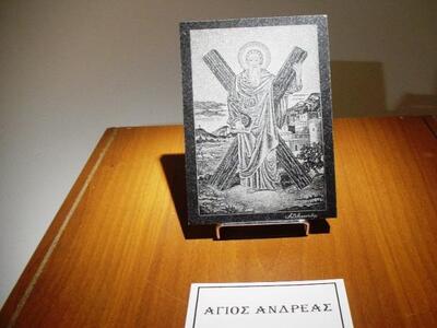 Στην έκθεση παρουσιάζονται είκοσι μοναδικά εμπνευσμένα έργα, πάνω σε μαύρο γρανίτη, έργα σπουδαία, επίμονης εργασίας, με παρουσίες όπως η Αυγή, ο Ερμής και ο Διόνυσος, με προσωπογραφίες, αγιογραφίες και πολλά ακόμα περίτεχνα έργα του πρωτοπόρου αυτού καλλιτέχνη.