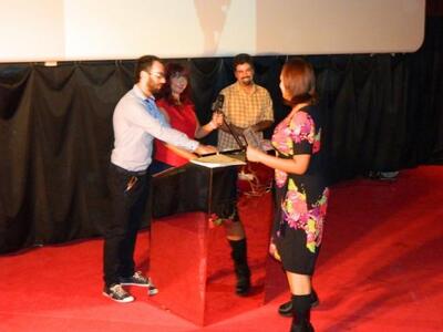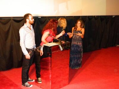Η Μαρία Μπιρμπίλη διευθύντρια παραγωγής της MProductions απένειμε το ΒΡΑΒΕΙΟ ΚΑΛΥΤΕΡΗΣ ΤΑΙΝΙΑΣ ΜΕΓΑΛΟΥ ΜΗΚΟΥΣ στον σκηνοθέτη Γιώργο Μπακόλλα για την ταινία του «Οι δαιμονισμένοι» σκην. 90’ Μ.μ., 2011