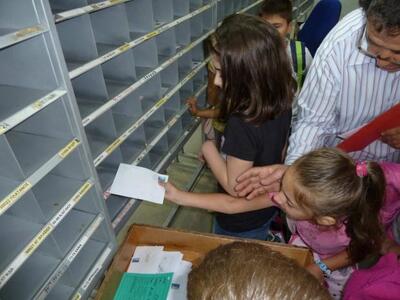 Αυτό που εντυπωσίασε περισσότερο τα παιδιά ήταν η ιταλική μηχανή διαλογής των επιστολών. Δείτε φωτό.