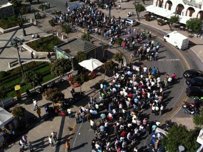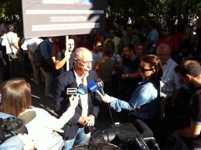 11:12 Φραστική επίθεση από μια μικρή μερίδα συγκεντρωμένων στην πλατεία Όλγας δέχθηκε ο Δήμαρχος Πατρέων Γιάννης Δημαράς. Μάλιστα, την ώρα που ο δήμαρχος έκανε τις δηλώσεις τους στα τοπικά ΜΜΕ, μια συμπολίτισσα μιλώντας από ντουντούκα καλούσε τον κ. Δημαρά ν’ απαντήσει τι θα κάνει με τη διαχείριση των σκουπιδιών και τους εργαζόμενους στον τομέα καθαριότητας. (BINTEO).