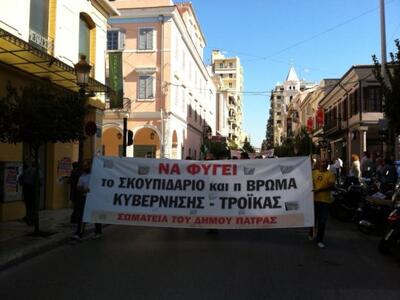 12:50 Ολοκληρώθηκαν οι δύο μαζικότατες πορείες που πραγματοποιήθηκαν σήμερα το πρωί, από το Εργατικό Κέντρο και το ΠΑΜΕ, στους κεντρικούς δρόμους της Πάτρας. Αξίζει να σημειωθεί ότι οι Δημοτικοί Υπάλληλοι αποφάσισαν ν’ ακολουθήσουν δική τους διαδρομή και όχι εκείνη του Εργατικού Κέντρου, κι έτσι πέρασαν μπροστά από το Δημαρχείο στην οδό Μαιζώνος όπου και θυροκόλλησαν ψήφισμα διαμαρτυρίας.