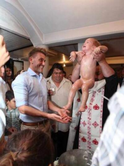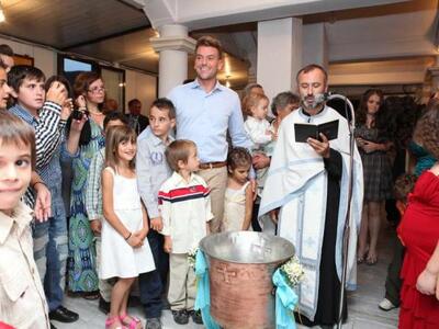 Η βάφτιση τελέστηκε στον Ιερό Ναό Αγίου Γεωργίου Βάλμης, για την ακρίβεια στο λυόμενο που λειτουργεί ο ναός μετά το σεισμό του 2008, στις 6 το απόγευμα, παρουσία της οικογένειας, συγγενών και φίλων.