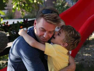 Ο νονός δεν άφηνε από την αγκαλιά του το νεοφώτιστο και δεν έκρυψε τη χαρά του που βρέθηκε και πάλι κοντά στην οικογένεια.