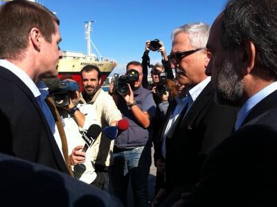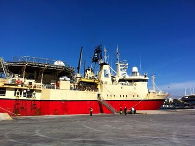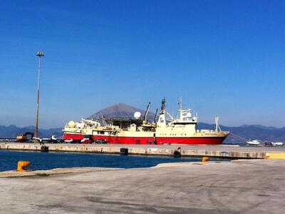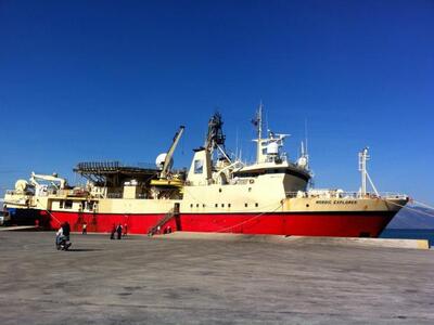 13.05 Στο λιμάνι έφτασαν πριν από λιγο ο Υπουργός Περιβάλλοντος Ευάγγελος Λιβιεράτος και ο πρώην υφυπουργός περιβάλλοντος και γραμματέας του ΠΑΣΟΚ Γιάννης Μανιάτης. Τους υποδέχτηκαν στελέχη της Νορβηγικής Εταιρείας P.G.S. και αυτή την ώρα τους ξεναγούν στο πλοίο που θα κάνει τις έρευνες σε Ιόνιο και Κρήτη.