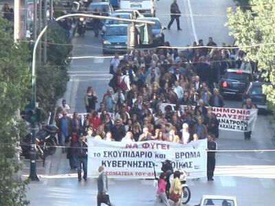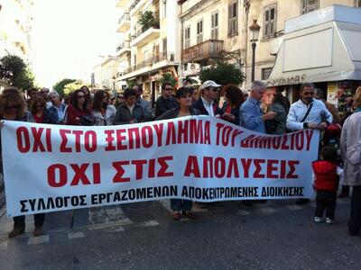 Συγκέντρωση διαμαρτυρίας έξω από το Δήμο Πατρέων στην οδό Μαιζώνος πραγματοποίησαν και σήμερα υπάλληλοι της τοπικής αυτοδιοίκησης που απεργούν αντιδρώντας στα σχέδια για απόλυση μεγάλης μερίδας υπαλλήλων από την κυβέρνηση και την Τρόικα.