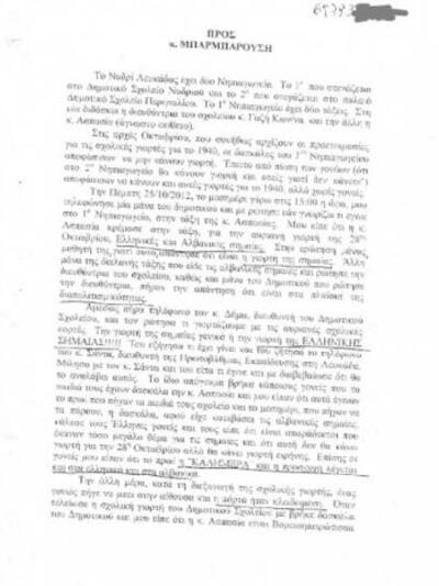 "Είναι θλιβερό εκπαιδευτικοί να αναρτούν ιταλικές και αλβανικές σημαίες σε νηπιαγωγείο, την ημέρα που η Ελλάς εορτάζει το "ΟΧΙ" και τη νίκη ενάντια σε Ιταλούς και Αλβανούς. Τέτοιου είδους ανιστόρητη και ανθελληνική προπαγάνδα σε Ελληνόπουλα πέντε ετών είναι καταδικαστέα από όλους."