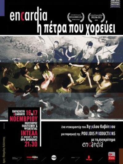 Το Βήμα Λόγου Επικοινωνίας Πολιτισμού «β.λ.ε.πο.» που είναι μια αστική μη κερδοσκοπική εταιρεία με στόχο την προώθηση του πολιτισμού σε κάθε του έκφανση χωρίς στεγανά, διοργανώνει αύριο Παρασκευή 16 Νοεμβρίου και το Σάββατο 17 Νοεμβρίου 2012 στις 21.30 στην αίθουσα του πολυχώρου Ιντεάλ στην Αγίου Νικολάου στην Πάτρα, την προβολή του κινηματογραφικού ντοκιμαντέρ «Encardia, η πέτρα που χορεύει».