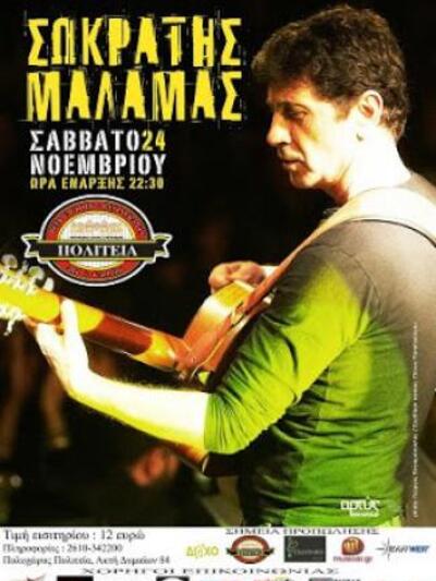 Ο Σωκράτης Μάλαμας που έχει φανατικό κοινό και στην Πάτρα, έχει τραγουδήσει στην περιοχή πολλές φορές. Τη δεκαετία του ’90 είχε εμφανιστεί στο Κάστρο της Πάτρας ενώ η πιο τελευταία του συναυλία εδώ ήταν πέρυσι τον Ιούνιο και πάλι στην Πολιτεία.