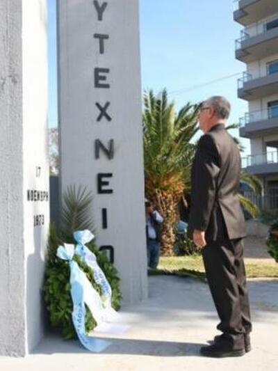 Στεφάνι στο μνημείο των Ηρώων του Πολυτεχνείου, στην παραλιακή οδό της πόλης και εν συνεχεία στο κτίριο όπου στεγαζόταν επί χούντας η ασφάλεια Πατρών, στην οδό Κανακάρη κατέθεσε νωρίτερα ο Δήμαρχος Πατρέων στο πλαίσιο των εκδηλώσεων για την επέτειο του Πολυτεχνείου.