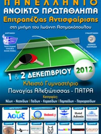 Στην τελική ευθεία για την διεξαγωγή του ανοικτού πρωταθλήματος πινγκ πονγκ "Ιωάννης Ασημακόπουλος" έχουν μπει οι διοργανωτές. Οι αγώνες θα πραγματοποιηθούν το επόμενο Σαββατοκύριακο και αναμένται να υπάρξει μεγάλη συμμετοχή αθλητών και αθλητριών.