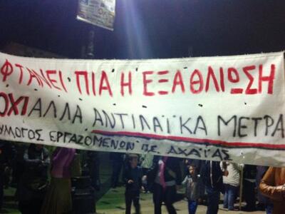 20.36: Ολοκληρώθηκε πριν από λίγη ώρα η πορεία διαμαρτυρίας που διοργανώθηκε από τη Συντονιστική Σωματείων Δημοσίου και Φορέων της Πάτρας. Οι συμμετέχοντες ξεκίνησαν από την πλατεία Γεωργίου και έκαναν πορεία στους κεντρικούς δρόμους της πόλης.