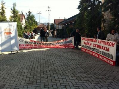 Στο χώρο όπου πραγματοποιείται η συνεδρίαση των Δημάρχων και αιρετών της Δυτικής Ελλάδας έχουν συγκεντρωθεί ήδη οι εργαζόμενοι το Δήμο της Πάτρας και μέλη λαϊκών συνελεύσεων.