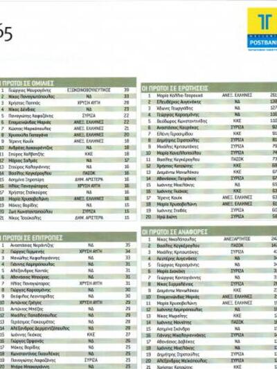 Η Μαρία Κανελλοπούλου, βουλευτής Αχαΐας του ΣΥΡΙΖΑ-ΕΚΜ, βρίσκεται στη δέκατη θέση του πίνακα με τους βουλευτές όλων των κομμάτων ο οποίοι έχουν καταθέσει τις περισσότερες ερωτήσεις.