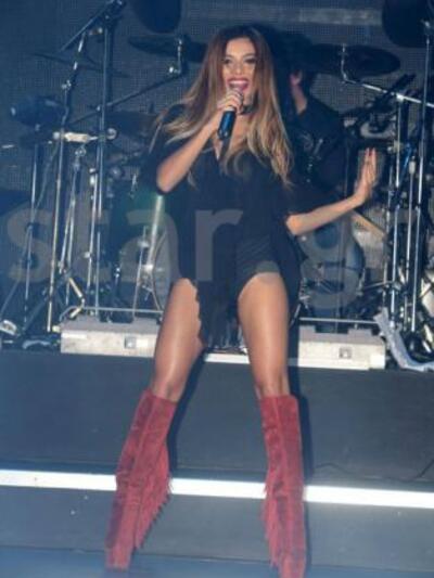 Όπως θα δείτε και στο πλούσιο φωτορεπορτάζ, η τραγουδίστρια που έχει «χτίσει» κορμί (όχι αστεία) ανεβαίνει στην πίστα και κάνει εμφάνιση που κόβει την ανάσα στους άνδρες και στις γυναίκες το φαγητό… μαχαίρι!