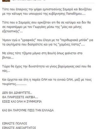 Σφροδρή επίθεση εξαπέλυσε ο Πρόεδρος των Ανεξάρτητων Ελλήνων, Πάνος Καμμένος, στον πρώην υπουργό Οικονομικών, Γιώργο Παπακωνσταντίνου, μέσα από την προσωπική του σελίδα στο Facebook.