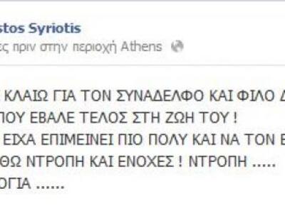 Ένας από αυτούς είναι ο καλός του φίλος και συνάδελφος Χρήστος Συριώτης ο οποίος έγραψε στο προφίλ του στο Facebook το εξής μήνυμα...