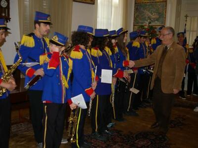 Στον Δήμαρχο Πατρέων κ. Γιάννη Δημαρά, έψαλε σήμερα το πρωί τα κάλαντα της Πρωτοχρονιάς η Μπαντίνα του Δήμου. Παρών ήταν και ο μικρότερος μουσικός της Μπαντίνας στον οποίο ο Δήμαρχος, ευχήθηκε, μεγαλώνοντας να γίνει και μαέστρος!