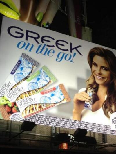 Η γλυκιά παρουσιάστρια που δηλώνει φανατική Ελληνίδα και στηρίζει κάθε προσπάθεια που διαφημίζει οτιδήποτε ελληνικό χαμογελά παιχνιδιάρικα στα εκατομμύρια των Νεοϋορκέζων που περνούν από την Times Square, μιας και γιγαντοαφίσα της βρίσκεται στη θρυλική πλατεία. Η Μαρία τρώει μπάρες δημητριακών με γιαούρτι, προϊόν που κάνει θραύση τον τελευταίο καιρό στις ΗΠΑ.