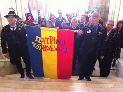 Το μεσημέρι  ο  τελάλης, που καθόλη τη διάρκεια της ημέρας  θα διαλαλεί το μήνυμα της έναρξης σε όλη την Πάτρα, με την καρναβαλική συνοδεία του και τους σοκολατορίχτες  κατέληξε στο Δημαρχιακό Μέγαρο και παρέδωσε στο Δήμαρχο Πατρέων Γιάννη Δημαρά το λάβαρο του Πατρινού Καρναβαλιού 2013, το οποίο και θα παραμείνει στο Δημαρχείο μέχρι το τέλος των εκδηλώσεων, στις 17 Μαρτίου.