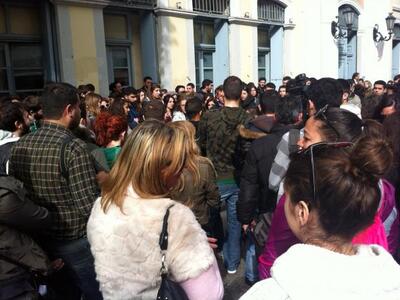 12:55 Συνεχίζουν την παρουσία στους κεντρικούς δρόμους της Πάτρας, μετά από την συνάντηση που είχαν με το Δήμαρχο Πατρέων Γιάννη Δημαρά, οι φοιτητές που διαμαρτύρονται για το σχέδιο "Αθηνά". Προς το παρόν παραμένουν συγκεντρωμένοι έξω από το Δημαρχείο στην οδό Μαιζώνος όπου έχει αρχίσει να δημιουργείται κυκλοφοριακό κομφούζιο καθώς έχουν εγκλωβιστεί στο σημείο τρία λεωφορεία.