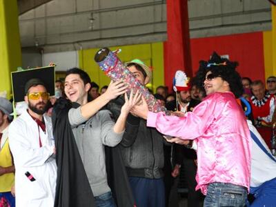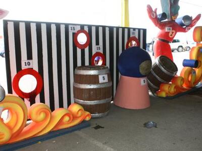 Τα πληρώματα περίμεναν μπουριά σόμπας, λάστιχα, έμβολα και άλλα υλικά και καλούνταν να τα χρησιμοποιήσουν, να τα μετατρέψουν και να κατασκευάσουν καρναβαλικά κανόνια με τα οποία θα στόχευαν σε καρναβαλικούς στόχους. Πρωτότυπες, ευφάνταστες και καλλιτεχνικές-καρναβαλικές κατασκευές ήταν το αποτέλεσμα και ο «αλλόκοτος» διαγωνισμός σκοποβολής… πήρε φωτιά με τα πληρώματα ανά τριάδες να ρίχνουν πυρ.