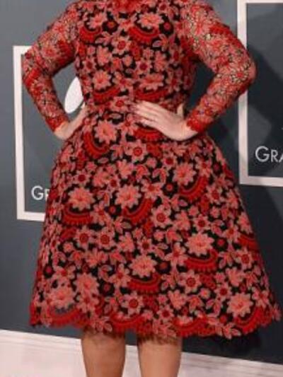 Η Βρετανίδα Adele που πάει και για Όσκαρ φέτος με το «Skyfall» ενώ φέτος κατέκτησε το ένατο Γκράμμυ της καριέρας της για την καλύτερη σόλο ποπ εμφάνιση στο κομμάτι «Set Fire to the Rain» εμφανίστηκε στο κόκκινο χαλί της τελετής με ένα φλοράλ Dior φόρεμα και ασορτί γόβες.