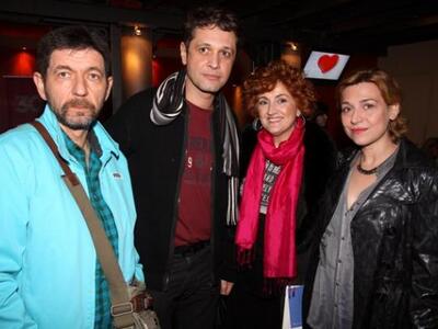 Στη φωτό οι ηθοποιοί της παράστασης Γιώργος Παπανδρέου, Aποστόλης Πελεκάνος, Πάνος Αθανασόπουλος και Μάρω Παπαδοπούλου με τον Τσέζαρις Γκραουζίνις.