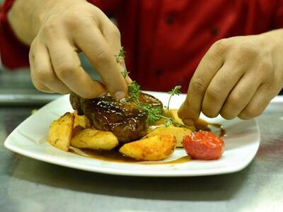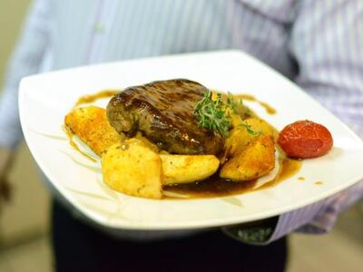 ● Το μοσχαράκι στη γάστρα με τα ρεβύθια.