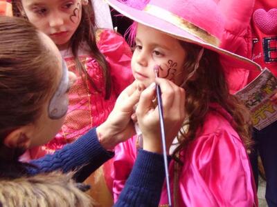 Οι μαθήτριες του μακιγιάζ της Σχολής και η καθηγήτρια τους, επιμελήθηκαν το μακιγιάζ των παιδιών όπως και στα Υψηλά Αλώνια, στις 23 και 24 Φεβρουαρίου, έτσι και στο κέντρο της πόλης που είχε μετατραπεί σε έναν ατελείωτο παιδότοπο δίνοντας, όχι μόνο στα παιδιά αλλά και στους γονείς τους, μεγάλη χαρά και βάζοντας τα στο κλήμα του Καρναβαλιού από τα πρώτα χρόνια της ζωής τους.