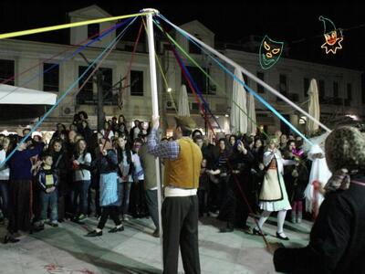 Η παραδοσιακή Αποκριά με τις μπούλες και τους μουντζούρηδες, τα “πιπεράτα” τραγούδια με τα υπονοούμενα, τις προβιές και τα κουδούνια στο λαιμό, είχε την τιμητική της το απόγευμα της Παρασκευής 8 Μαρτίου στην πλατεία Αγίας Λαύρας, όπου η Δημοτική Κοινωφελής Επιχείρηση Αιγιαλείας, με τη συμμετοχή 6 χορευτικών ομίλων από όλη την Αιγιάλεια, έστησε ένα γνήσιο αποκριάτικο ελληνικό γλέντι υπό τον τίτλο “Παραδοσιακά Αποκριάτικα Σεργιάνια”. Χοροί, δρώμενα και έθιμα, στο σύνολό τους σκωπτικά και εύθυμα, ζωντάνεψαν το κέντρο του Αιγίου με τρόπο πολύ διαφορετικό από του “δυτικού” που είθισται να υιοθετούμε την περίοδο του καρναβαλιού.