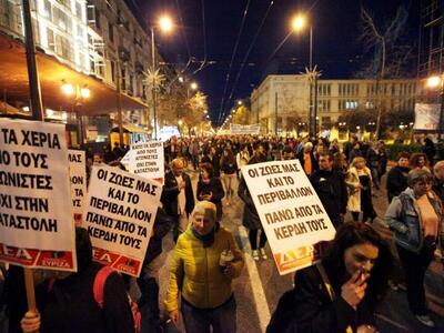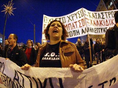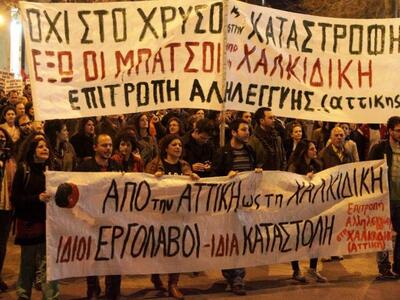 Σε εξέλιξη αυτή την ώρα πορεία συμπαράστασης στους κατοίκους της Χαλκιδικής που αντιδρούν στην εξόρυξη χρυσού στις Σκουριές.