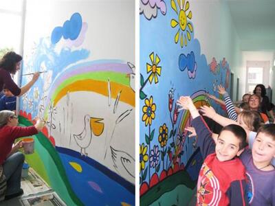 Μια πολύχρωμη τοιχογραφία έξω από την αίθουσά τους ζωγράφισαν οι μαθητές της Δ' τάξης του Δημοτικού Σχολείου Λάππα με τη βοήθεια της δραστήριας δασκάλας τους Αναστασίας Οικονομοπούλου και φυσικά του ΑΓΑΦΡΟΝ που ταξίδεψε για χάρη των παιδιών και της φαντασίας τους.