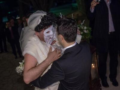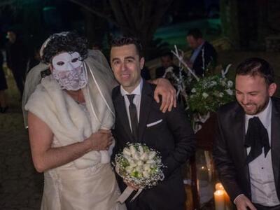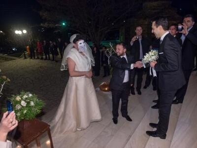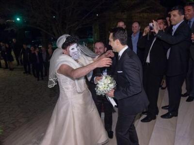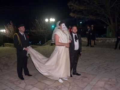 Το στολισμένο αυτοκίνητο έφθασε κορνάροντας όπως το απαιτεί το έθιμο μπροστά από Ι.Ν. Αγίας Παρασκευής στο Πλατάνι αλλά οι καλεσμένοι και κυρίως ο γαμπρός Σταύρος Στεφανόπουλος, έμειναν με το στόμα ανοικτό όταν είδαν να κατεβαίνει αντί για τη νυφούλα Αννα Ανδριοπούλου μία... άλλη μασκοφορεμένη ύπαρξη.