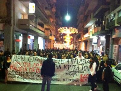 Φοιτητές - Εκπαιδευτικοί - Εργαζόμενοι, με κοινό μέτωπο υπερασπιζόμαστε το δημόσιο χαρακτήρα της τριτοβάθμιας εκπαίδευσης. Συνδέουμε τον αγώνα μας με την υπόλοιπη κοινωνία που «στενάζει» από τις συνέπειες της κρίσης τους.