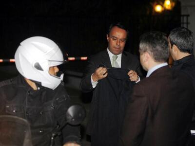 Μετά το τέλος της χθεσινής σύσκεψης στο Μέγαρο Μαξίμου ο Χρήστος Σταϊκούρας φόρεσε πάνω από το κουστούμι το ειδικό μπουφάν και το κράνος του. O υπουργός, όπως γράφει το real.gr, αφού συνομίλησε με δημοσιογράφους ανέβηκε στη μηχανή και έφυγε με τον οδηγό του.