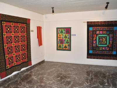 Στη συνέχεια η κ. Γκούμα ξενάγησε τους επισκέπτες της Έκθεσης εξηγώντας τη δουλειά της στα patcwork και στα υφαντά του αργαλειού.
