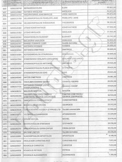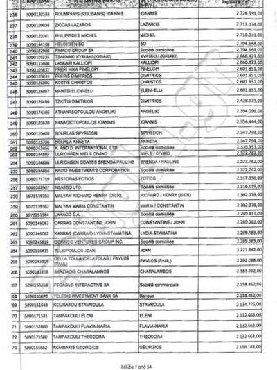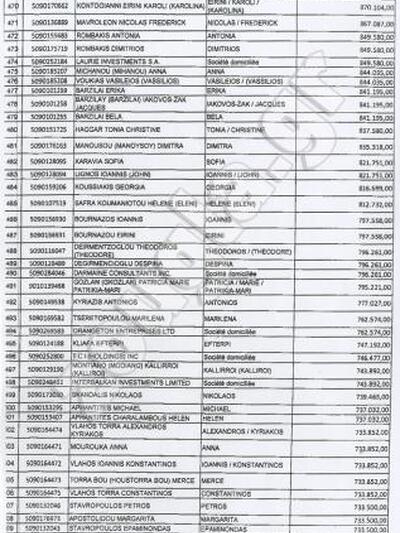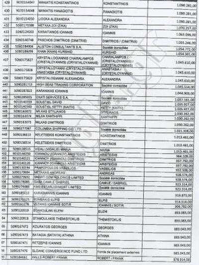 Να σημειωθεί ότι τα πρωτα 79 ονόματα εμφανίζουν ποσά άνω των 10 εκατομμυρίων δολαρίων ενώ 451 εμφανίζουν ποσά άνω του 1 εκατομμυρίου ευρώ.