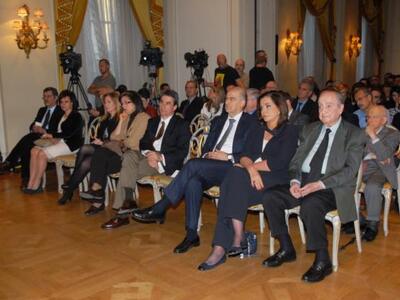 Ο πρόεδρος της Τράπεζας Πειραιώς Μιχάλης Σάλλας με τη σύζυγό του Σοφία, ο διευθύνων σύμβουλος της Eurobank Νίκος Νανόπουλος, ο αναπληρωτής διευθύνων σύμβουλος της Eurobank, καθηγητής Νίκος Καραμούζης, ο πρόεδρος του ΣΕΒ Ιnternational Θανάσης Λαβίδας, ο αντιπρόεδρος του ΣΕΒ Σάκης Καλλιτζάτζης.