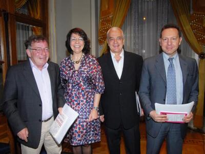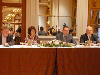 Γιάννης Στουρνάρας, Καθηγητής Πανεπιστημίου Αθηνών και Υπουργός Οικονομικών, η Μαρία Δαμανάκη, Μέλος της Ευρωπαϊκής Επιτροπής και ο Ηλίας Νικολακόπουλος, Καθηγητής Πανεπιστημίου Αθηνών.