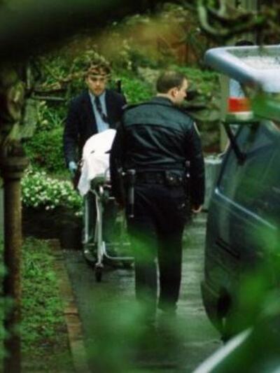 Οι αστυνομικές αρχές αλλά και μια ομάδα από ιατροδικαστές διακρίνονται στις φωτογραφίες να μεταφέρουν το άψυχο σώμα του, το οποίο καλύπτεται από ένα άσπρο σεντόνι.