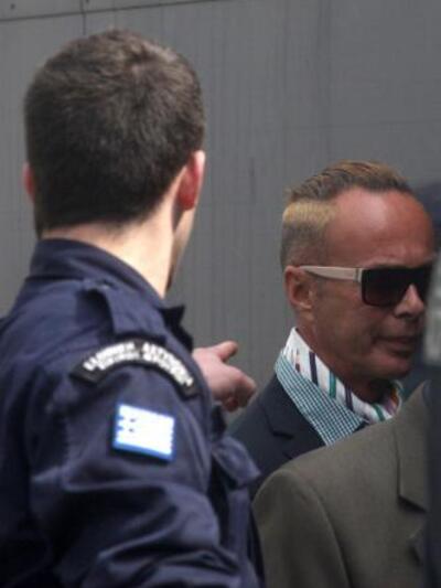 Αν και με χειροπέδες και συνοδεία ισχυρής αστυνομικής δύναμης ο Λάκης Γαβαλάς ήταν και σήμερα, όπως πάντα, στην πένα: Ηλιοκαμένος, παρά το γεγονός ότι τους τελευταίους μήνες βρίσκεται στη φυλακή, με το «κλασικό» φουλάρι και με νέο κούρεμα και χρώμα στα μαλλιά.